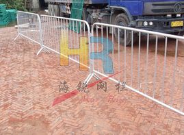 鐵馬護欄又稱為施工鐵馬、施工鐵護欄、施工護欄、市政鐵馬等,高度基本都為1.3米。主要用于對道路及建筑施工時起到與人群隔離的作用。鐵馬護欄外管采用32mm鐵管,內管采用22mm鐵管焊接加工制作成形后進行靜電噴涂后高溫烘干工藝,最后表面加貼反光膜成品;擺設方便,耐沖擊,不易老化生銹、使用壽命長等特點。